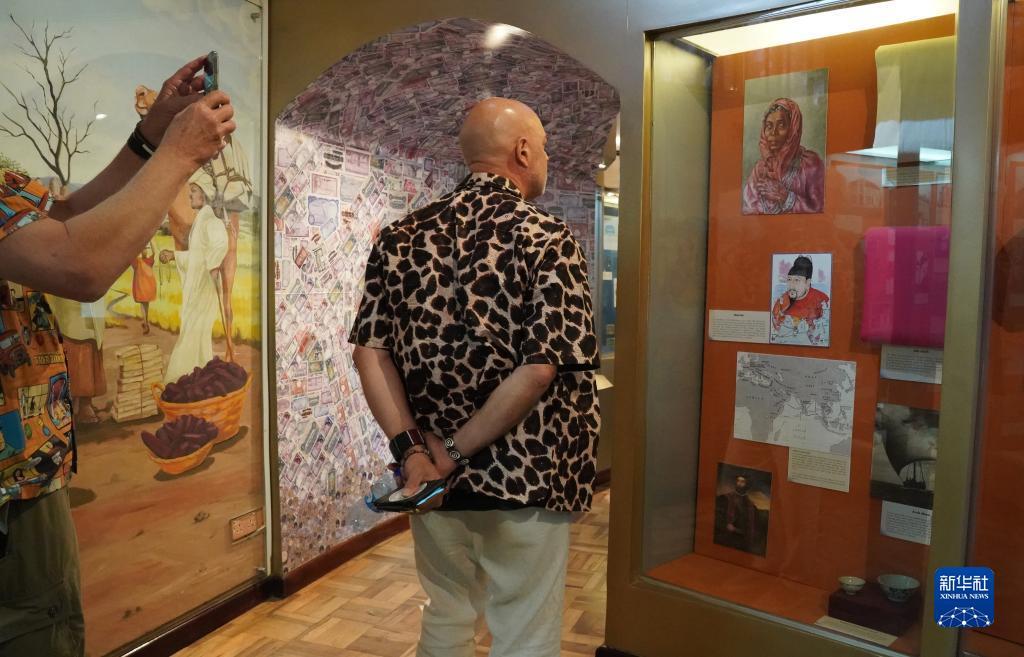 5月16日,一名游客在内罗毕国家博物馆观看郑和下西洋介绍及中国瓷器展品。