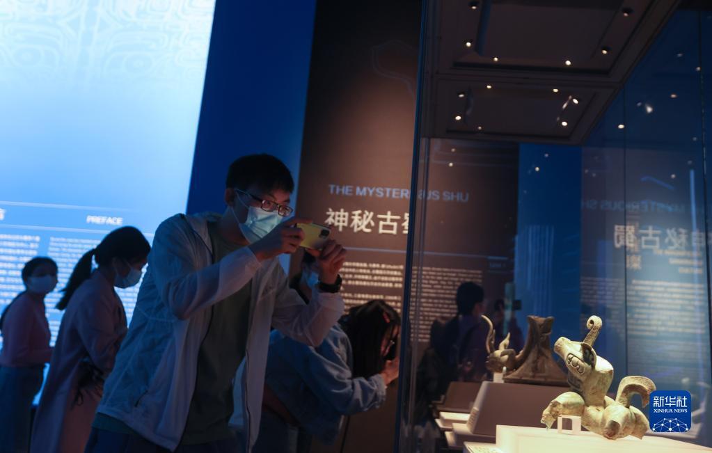 当日,“花开并蒂——巴蜀青铜文明特展”作为国际博物馆日川渝主会场重磅展览在宜宾市博物院展出,此前在三星堆遗址3号“祭祀坑”出土的一件形似“机器狗”的铜神兽首次面向公众展出。新华社记者 江宏景 摄