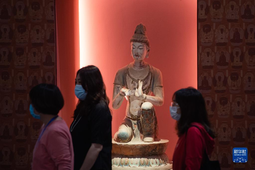 当日,由武汉大学与敦煌研究院联合主办的“万里千年”——敦煌石窟考古特展在武汉大学万林艺术博物馆举行。展览共展出文物近百件,多数文物为首次走出莫高窟。展览还选取了有代表性的壁画及彩塑临品、复制洞窟等,展品共计168件(套),全方位立体展示敦煌石窟考古的丰硕成果和重大学术价值。新华社记者 肖艺九 摄