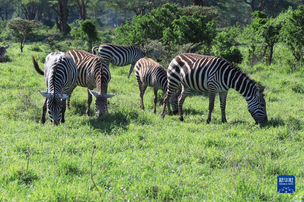 这是5月13日在肯尼亚纳库鲁湖国家公园拍摄的斑马。