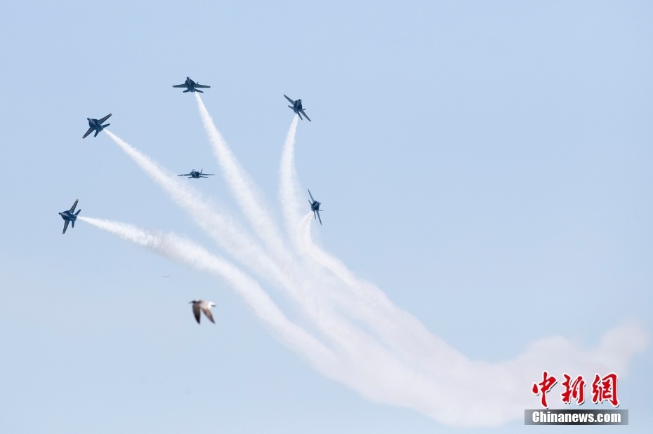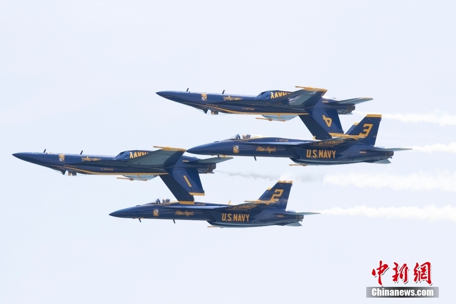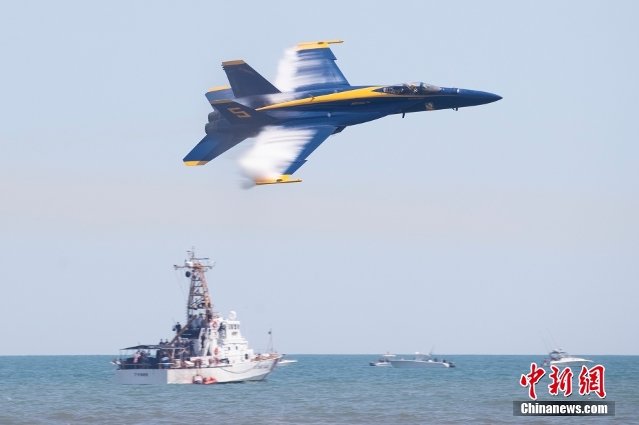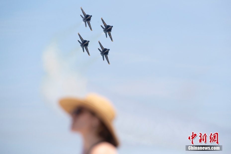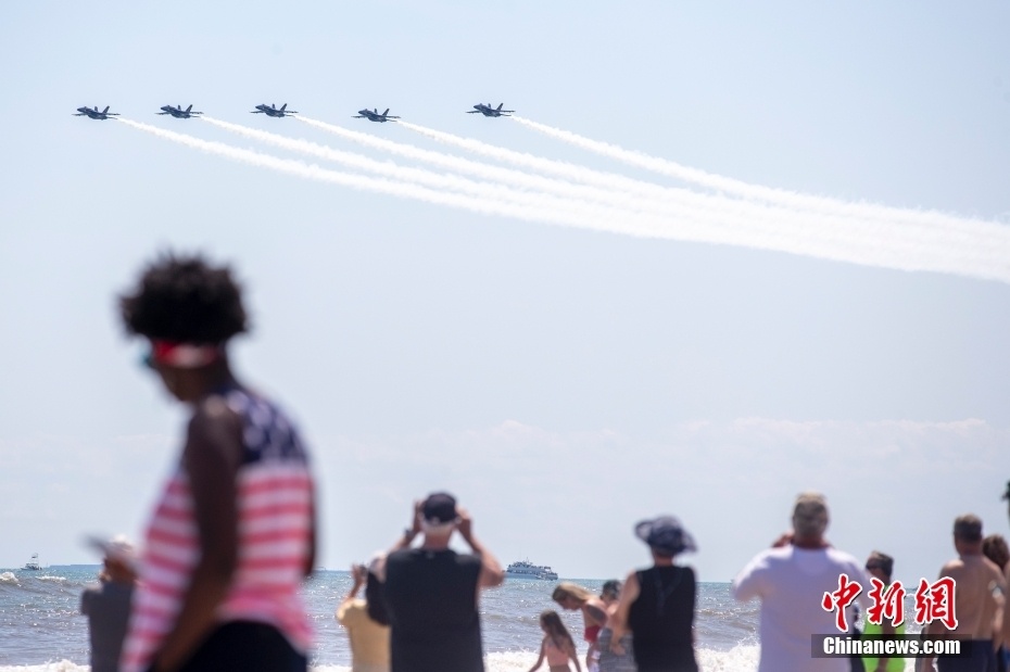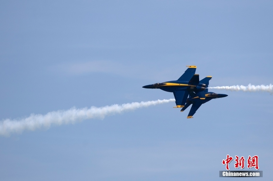 当地时间5月29日,美国纽约州琼斯海滩举行年度飞行表演秀,美国海军“蓝天使”飞行表演队进行飞行表演。 中新社记者 廖攀 摄