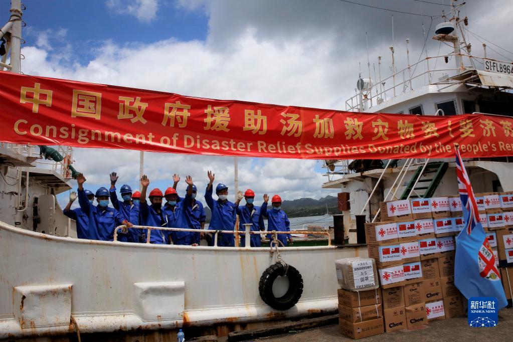 2022年1月24日,中国政府援助汤加救灾物资从斐济首都苏瓦的渔船码头启运。汤加火山爆发造成严重灾害后,中方立即响应汤方请求,通过多种渠道提供救灾援助。
