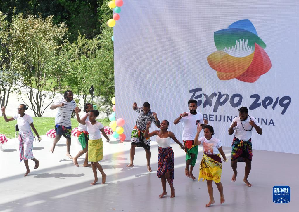 2019年7月30日,来自瓦努阿图的年轻人在2019年中国北京世界园艺博览会“瓦努阿图国家日”活动上表演。