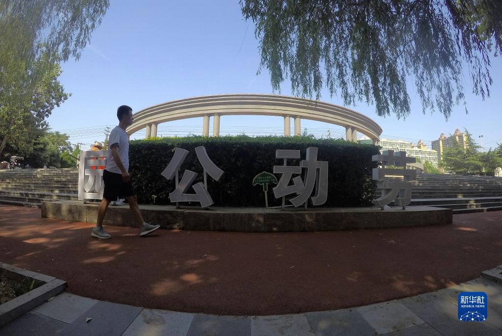 6月8日,市民在石家庄市行唐县颍水河畔的劳动公园休闲。