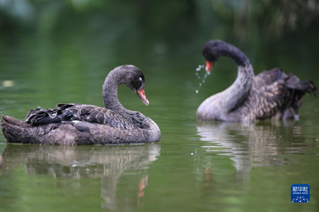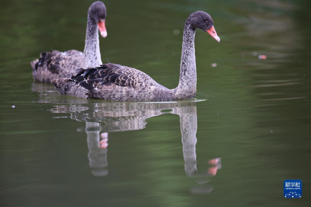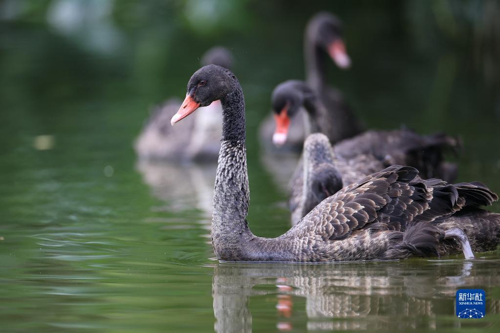近日,贵州省贵阳市观山湖公园迎来一批黑天鹅,它们优雅地畅游在观山湖湖水中,嬉戏、觅食。