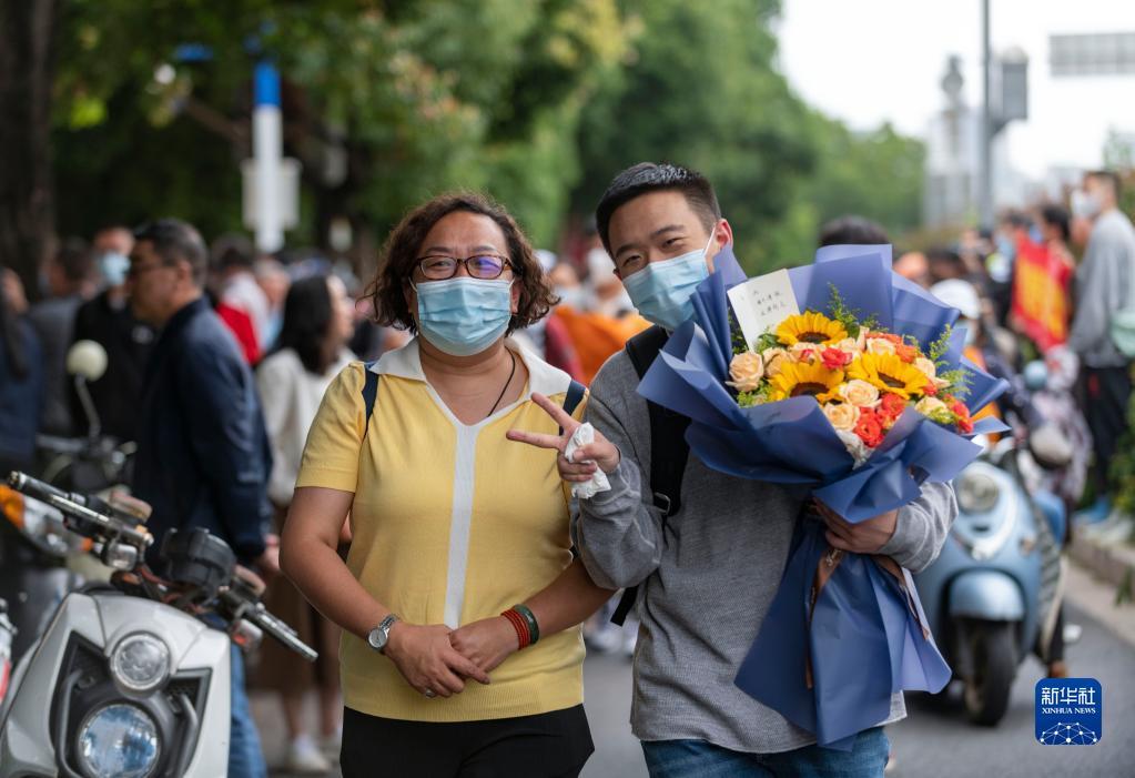 6月8日,在云南省昆明市云大附中考点,结束高考的考生(右)和母亲一起离开。