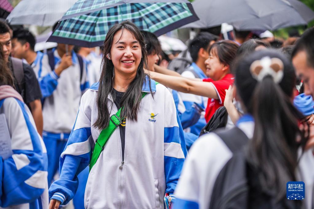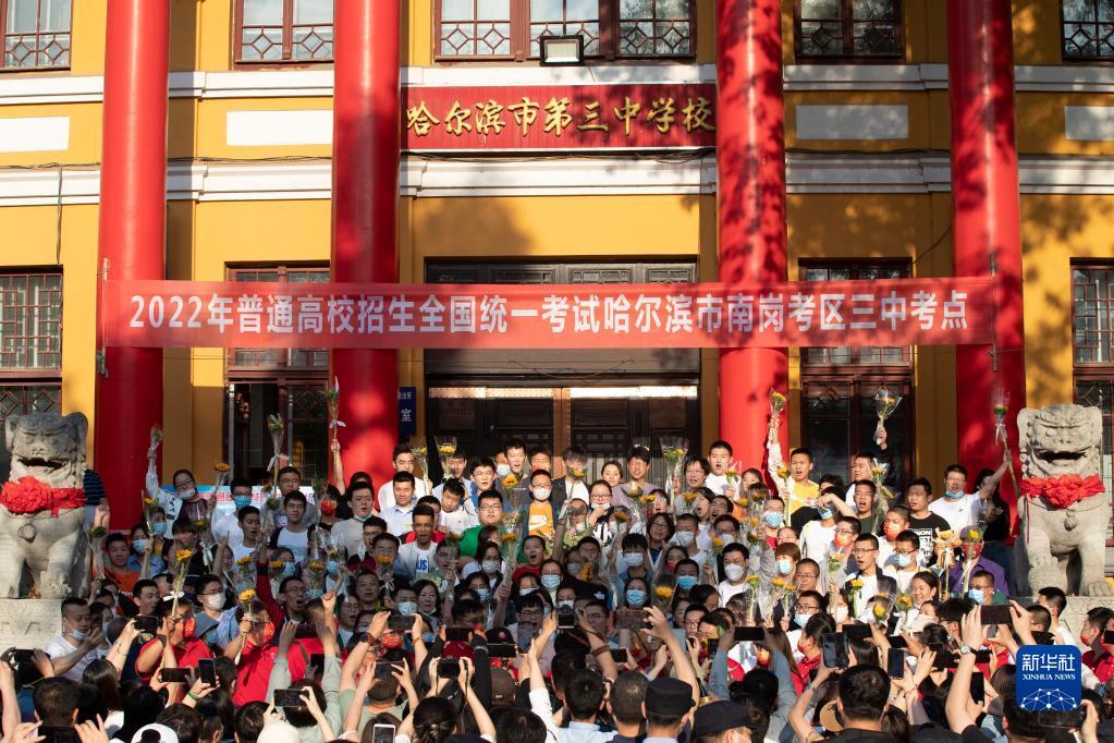 6月8日,在哈尔滨市第三中学考点,考生们走出考场。