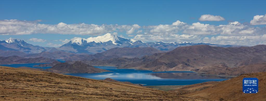 从垭口远眺位于山南市浪卡子县的羊卓雍措(6月3日摄)。