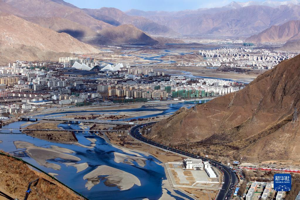 拉萨河从城区蜿蜒而过(3月2日摄)。