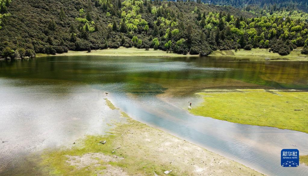 这是位于林芝市巴宜区鲁朗镇的一片湿地(5月31日摄,无人机照片) 。