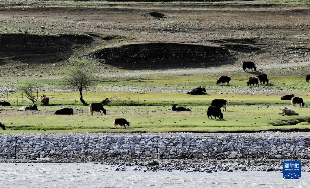 6月9日拍摄的拉萨市堆龙德庆区河边的高原牧场。