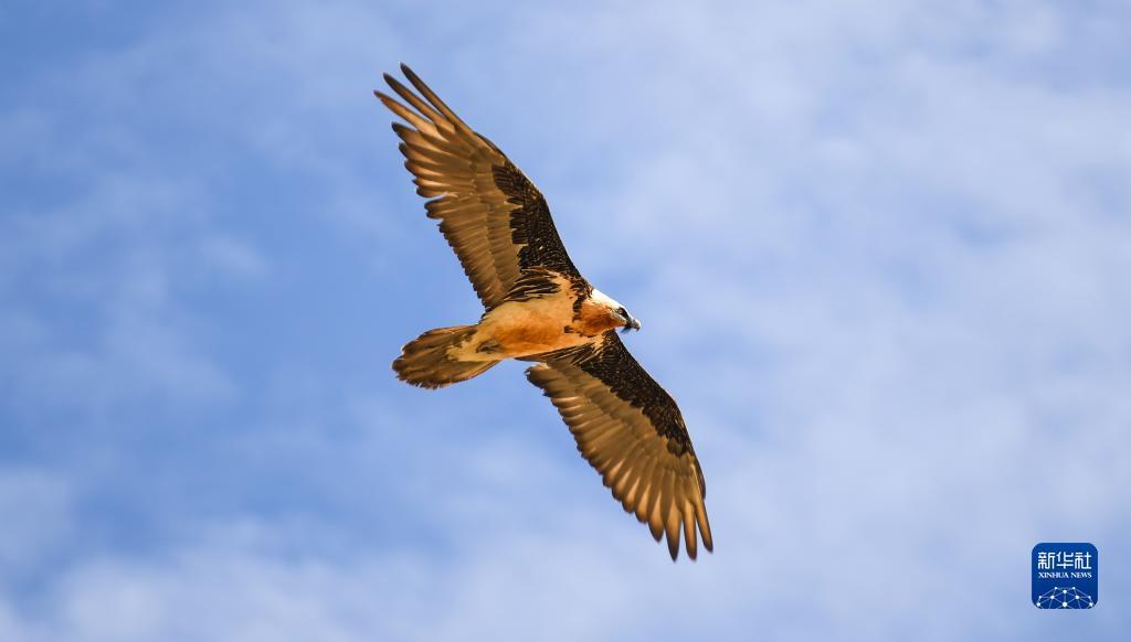 这是在那曲市比如县拍摄到的胡兀鹫(5月25日摄)。