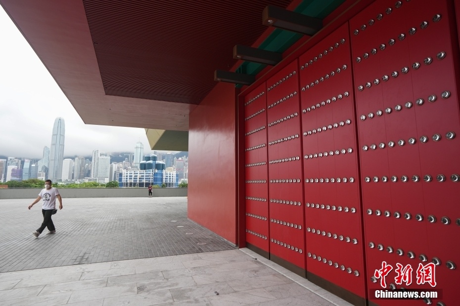 6月9日,香港,记者探访位于西九文化区的香港故宫文化博物馆。据悉,来自北京故宫博物院的914件珍贵文物,将于7月在香港故宫文化博物馆开幕展中亮相。香港故宫文化博物馆正门入口的大门上有门钉装饰,参照了故宫的门钉装饰设计。 中新社记者 崔楠 摄