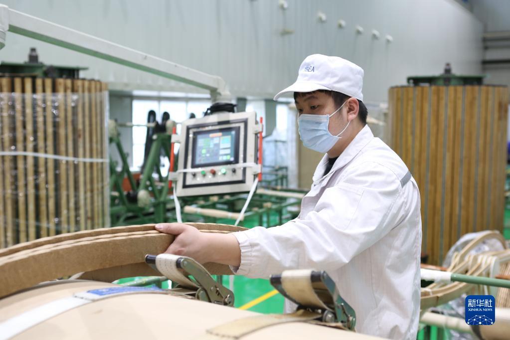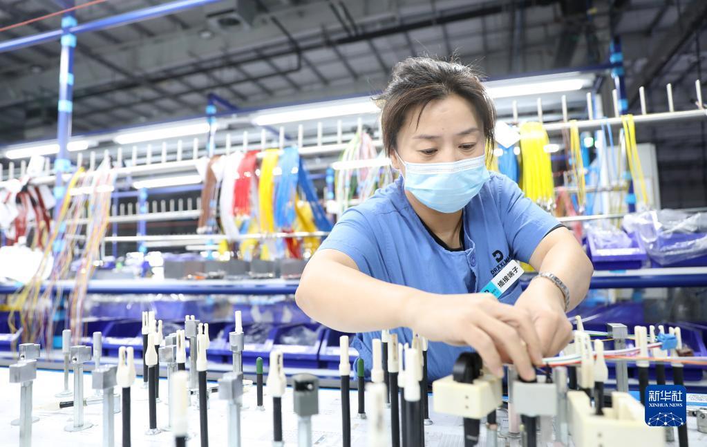 4月19日,德科斯米尔(鞍山)线束系统有限公司的工人在车间内生产汽车线束。