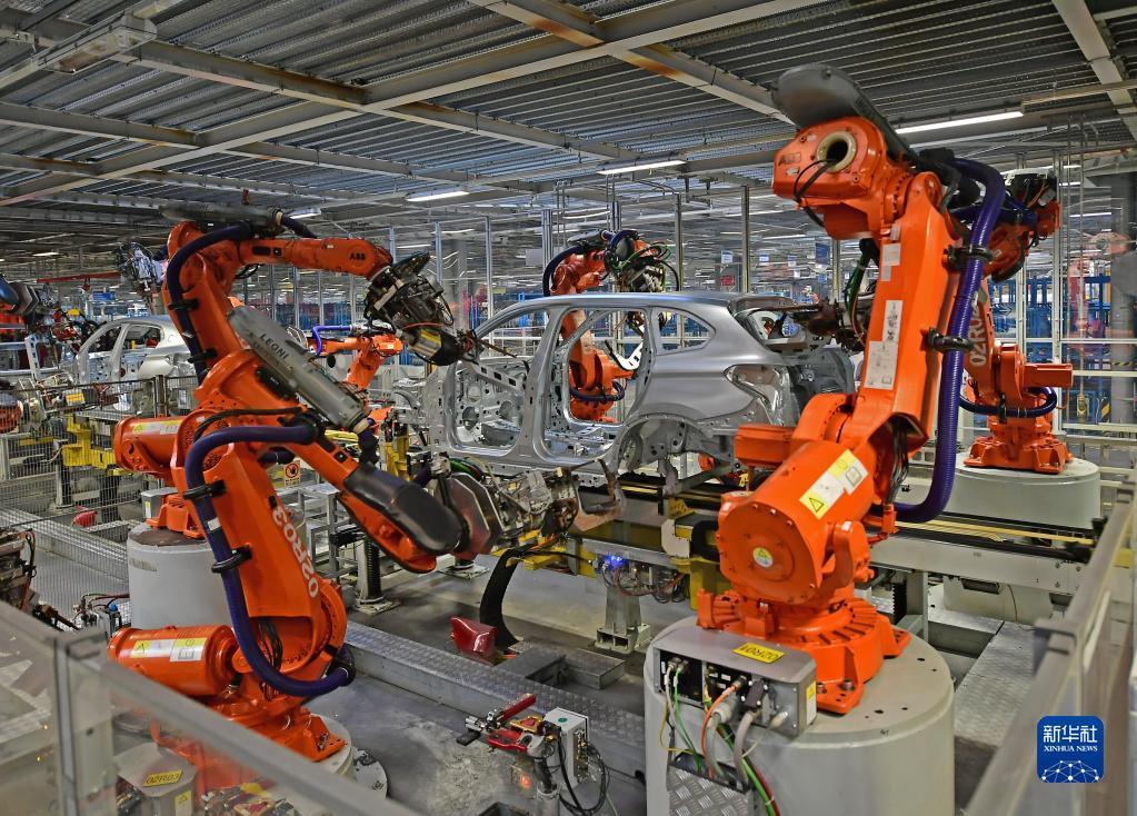 2月16日,在华晨宝马沈阳铁西工厂车身车间,机器臂在焊接车身。