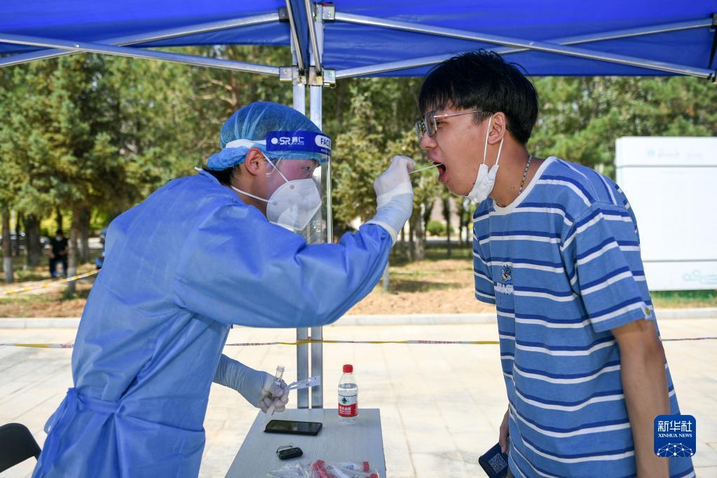 6月19日,在位于内蒙古呼和浩特市和林格尔县的内蒙古师范大学(盛乐校区),应届毕业生接受核酸采样。