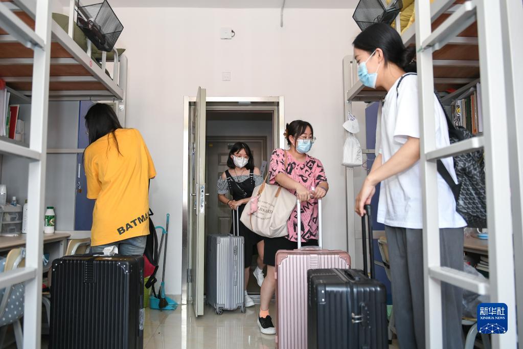 6月19日,在位于内蒙古呼和浩特市和林格尔县的内蒙古师范大学(盛乐校区)学生公寓,应届毕业生进入宿舍。