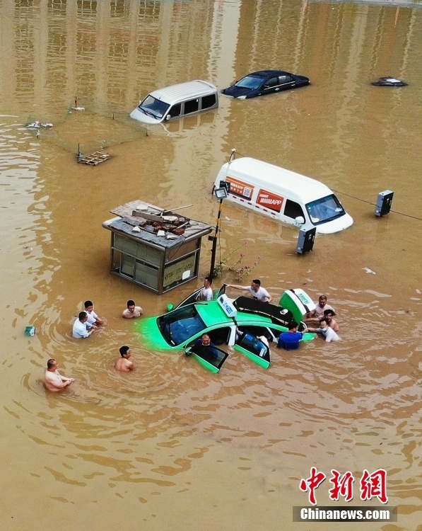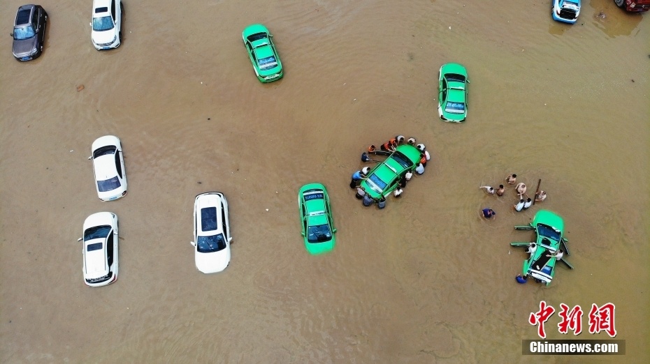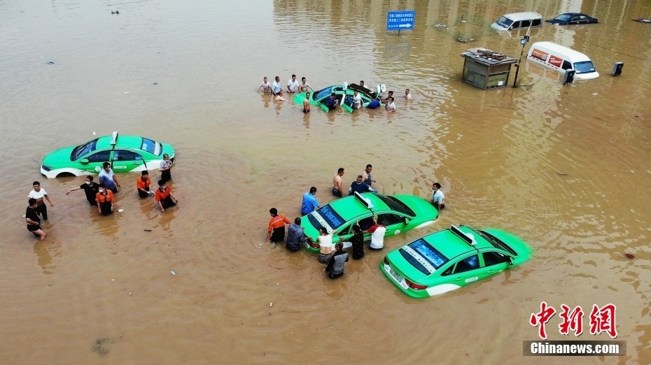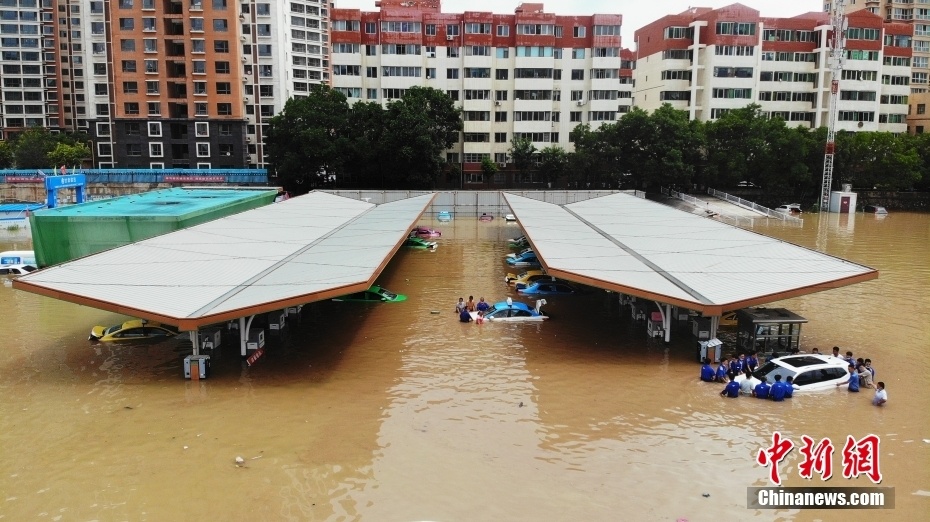 7月11日,甘肃兰州西固区某充电站内车辆被淹,救援人员与车主、出租车司机等协力进行救援作业。当日凌晨,兰州突降暴雨,造成部分路段积水严重。 中新社记者 李亚龙 摄