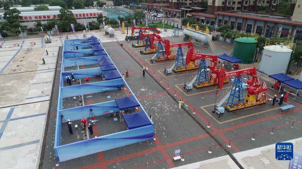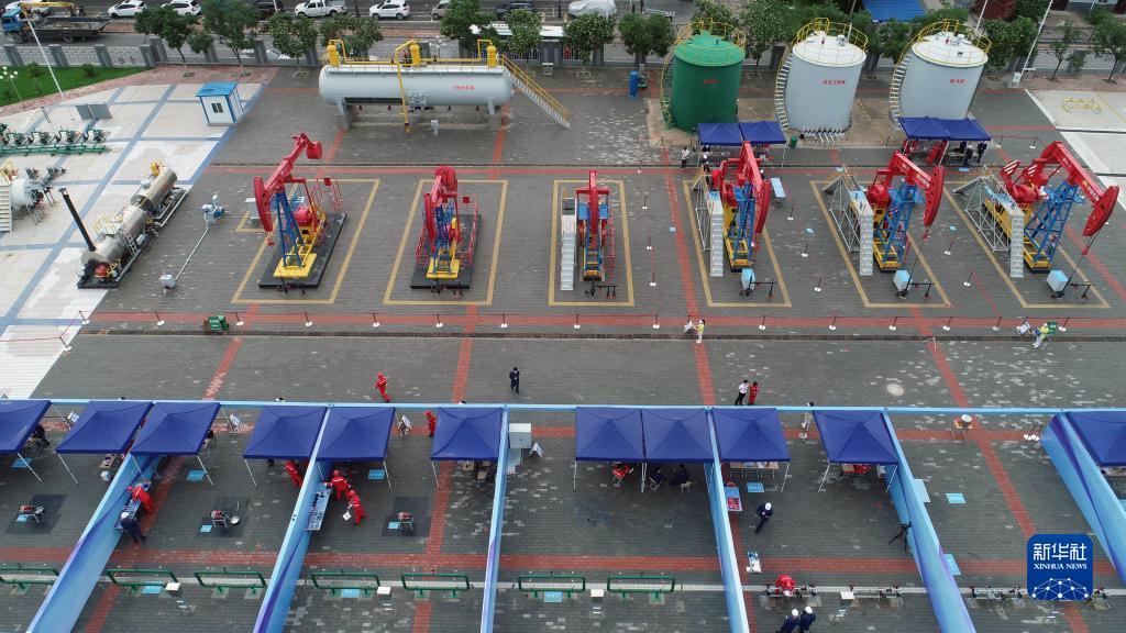 第四届全国油气开发专业职业技能竞赛现场(无人机照片,7月16日摄)。