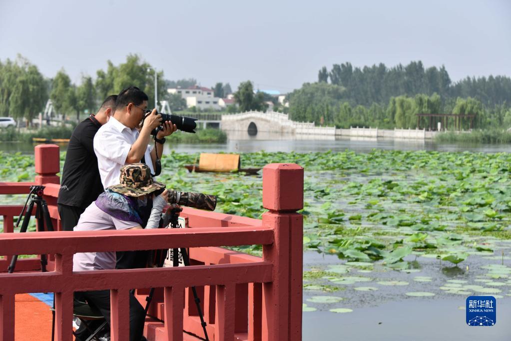 7月21日,摄影爱好者在微山湖旅游区拍摄野生鸟类。