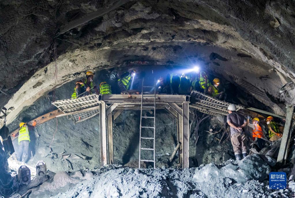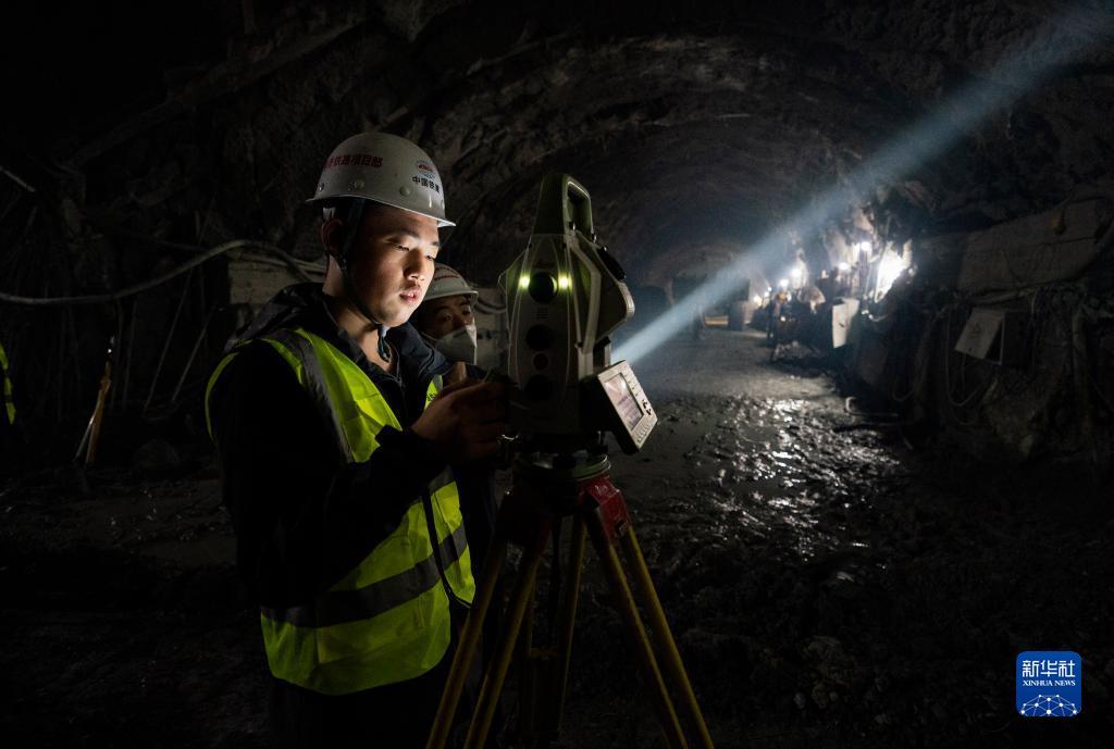 7月27日,在中铁十六局哈巴雪山隧道项目建设现场,技术人员在进行测量作业。