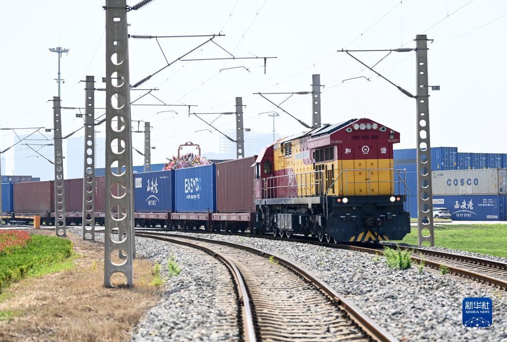 7月29日,X9015次中欧班列长安号从西安国际港站出发开往哈萨克斯坦。