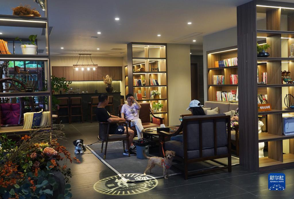 在江西省靖安县中源乡合港村,“避暑住客”在一处民宿内休闲(7月27日摄)。