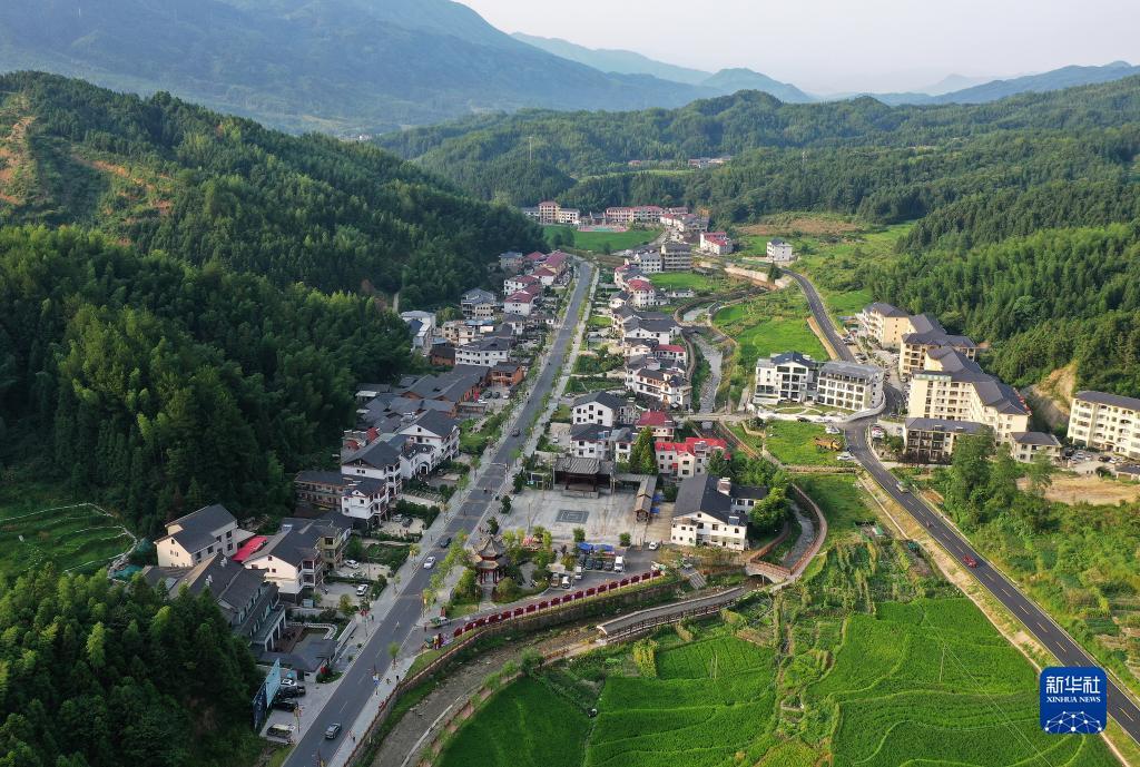 这是位于九岭山脉中的江西省靖安县中源乡三坪村(7月27日摄,无人机照片)。