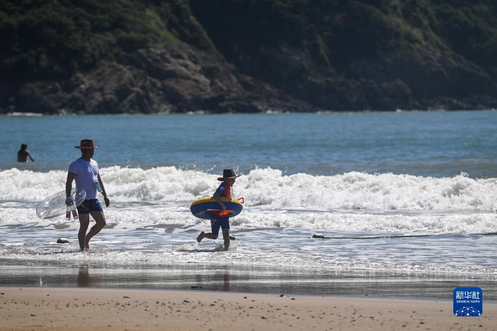 8月3日,游客在朱家尖东沙景区游玩。