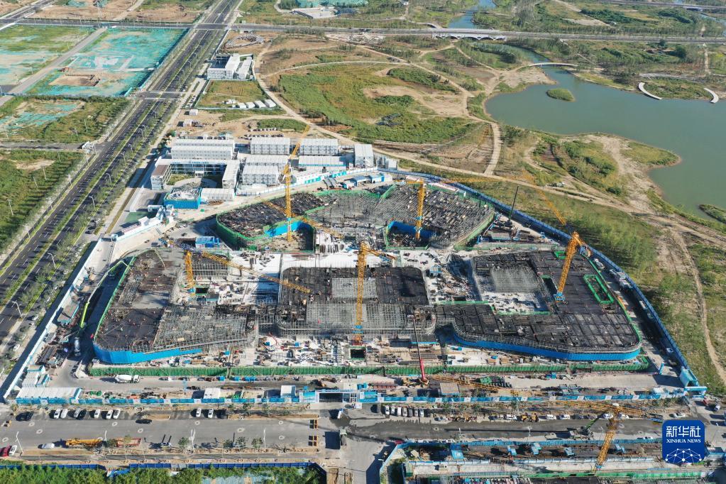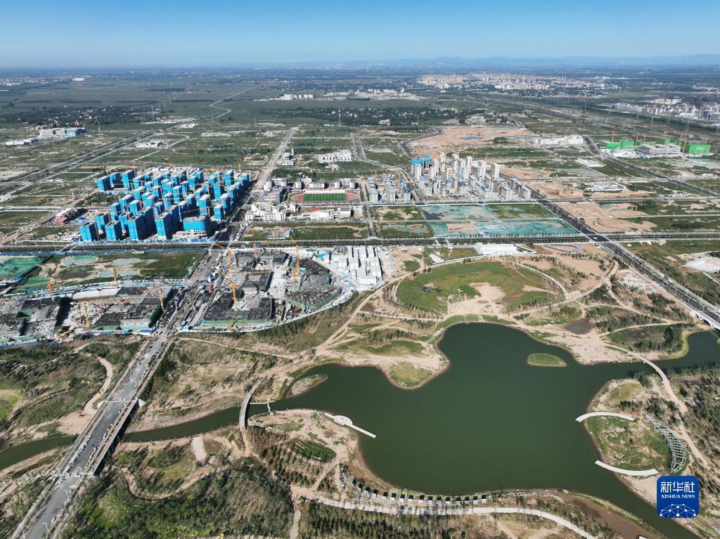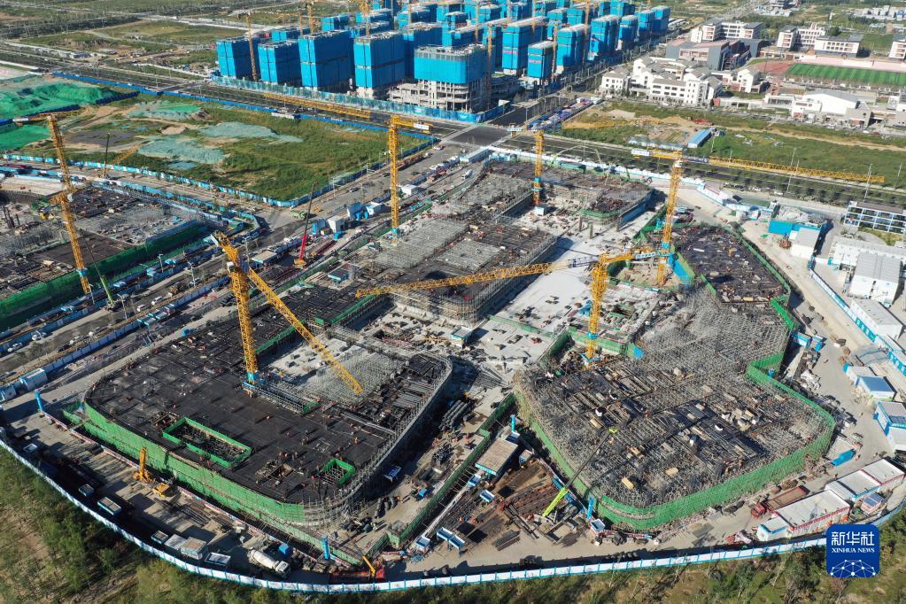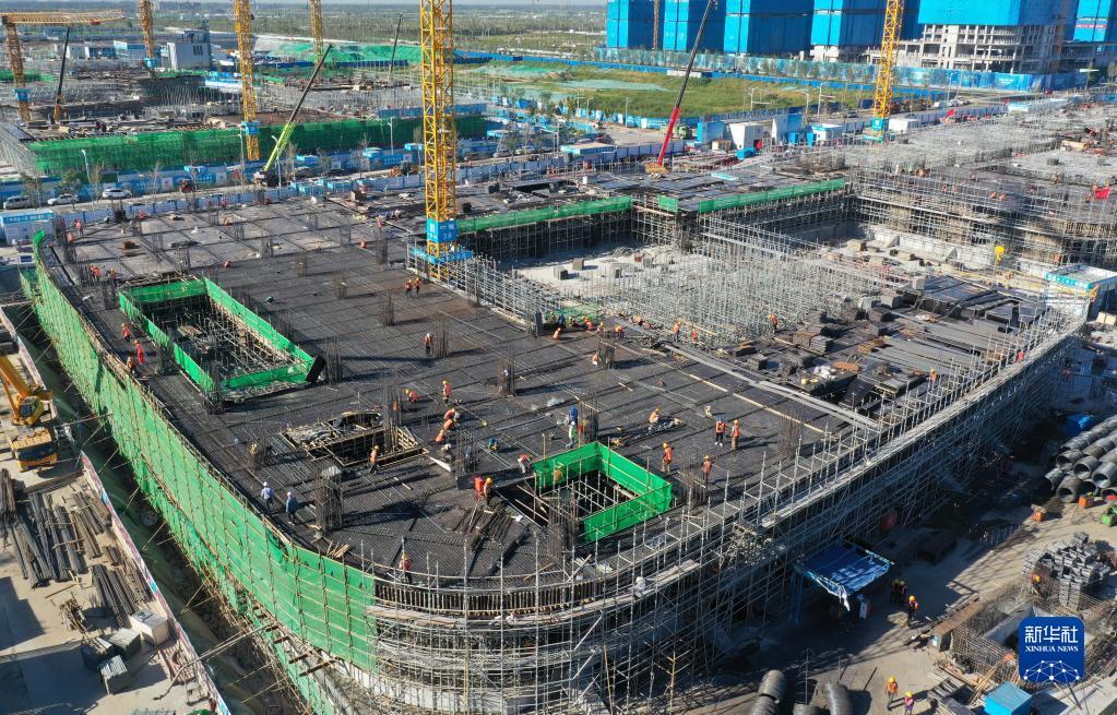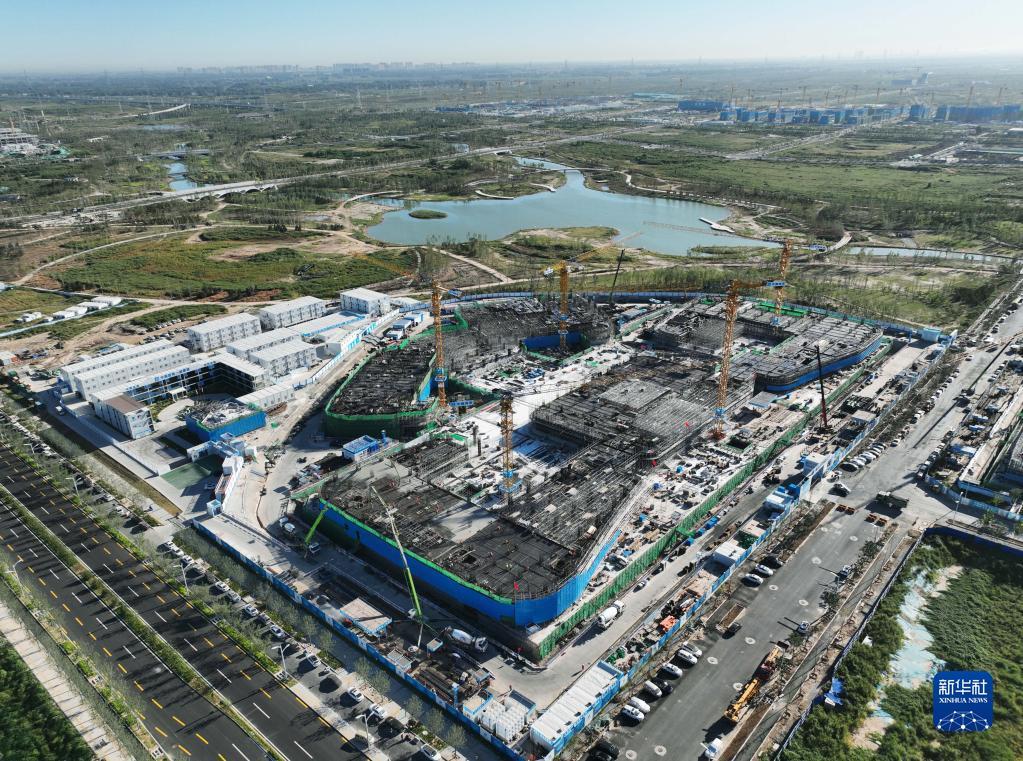 建设中的中国卫星网络集团有限公司(简称中国星网)雄安新区总部大楼(9月7日摄,无人机照片)。