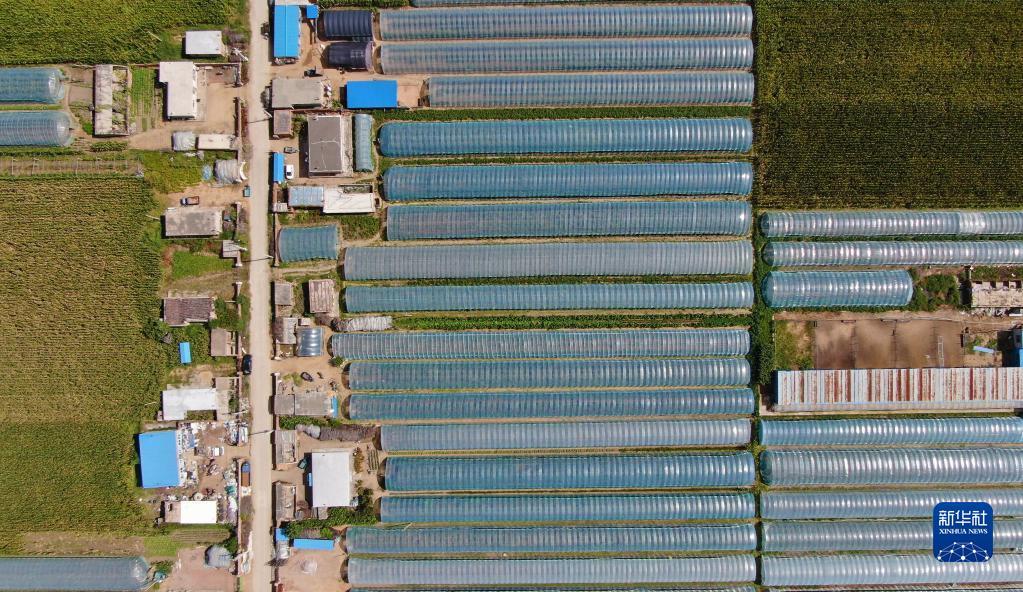 9月6日拍摄的丁家房镇葡萄大棚(无人机照片)。