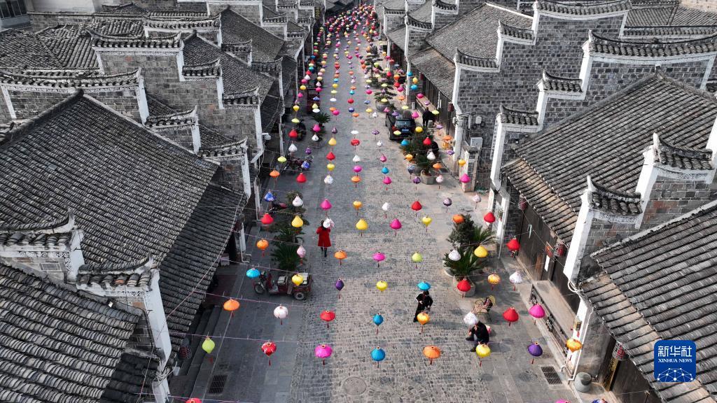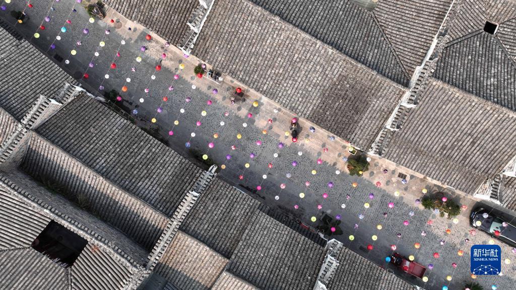 这是2月1日拍摄的旧州古镇一角(无人机照片)。