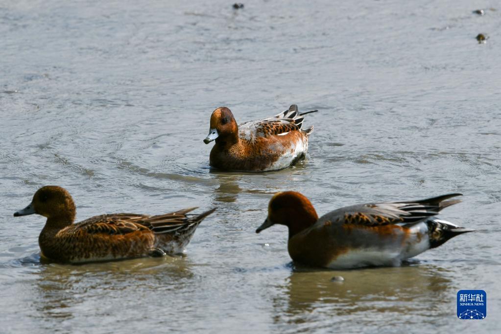 一群赤颈鸭在福田红树林湿地里栖息(2022年11月11日摄)。
