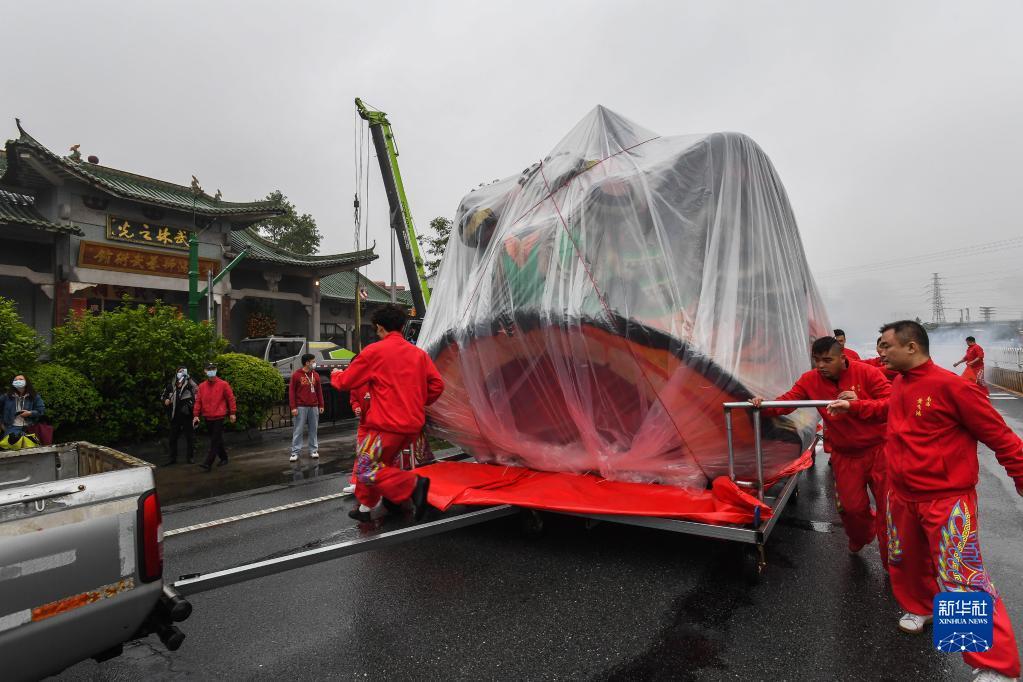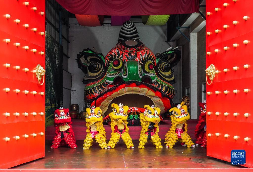 1月12日,高4.68米、宽4.5米的“狮王”狮头被请出佛山市南海区西樵山黄飞鸿狮艺武术馆。