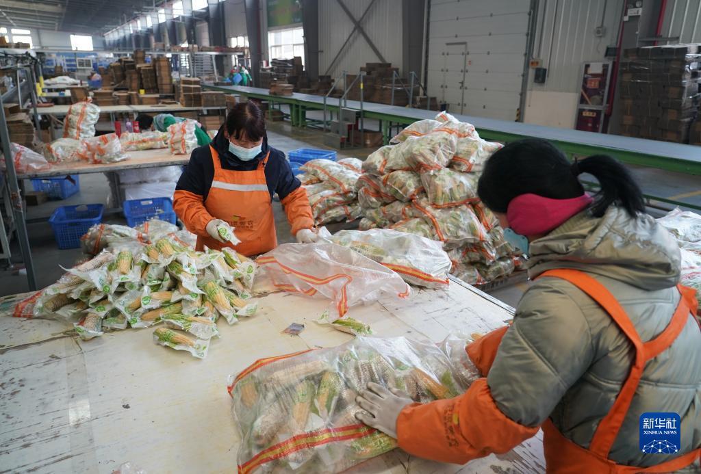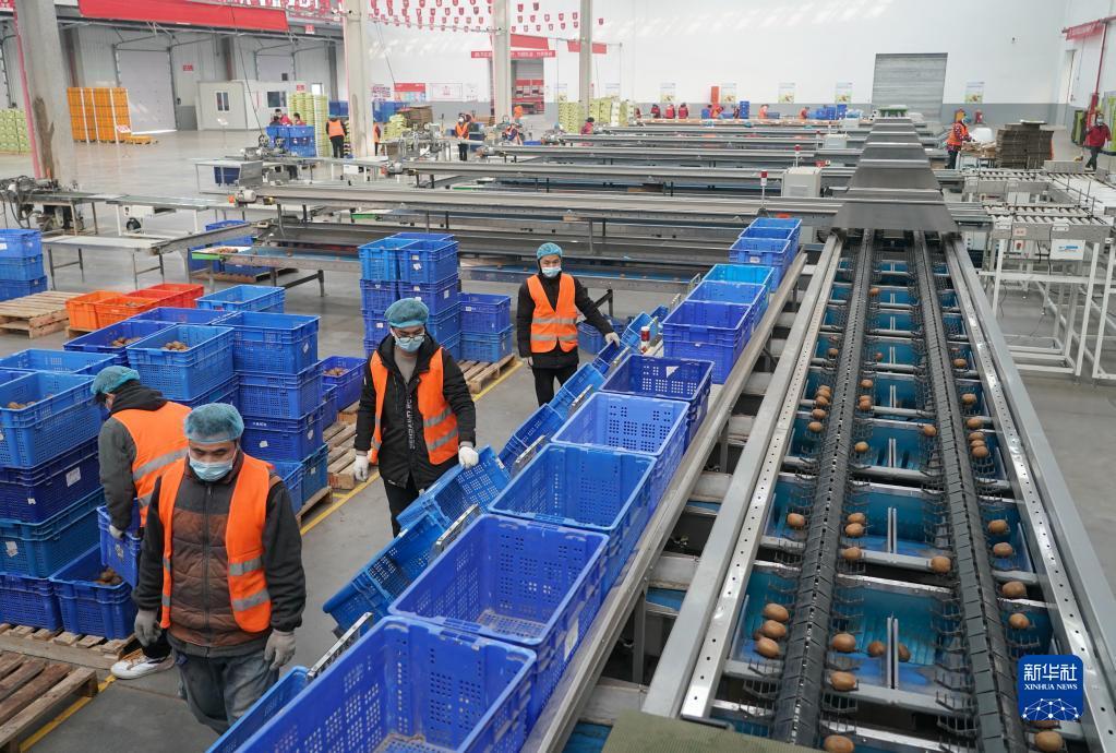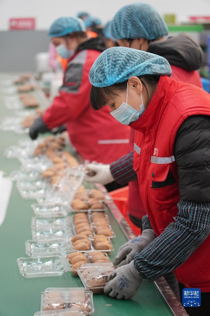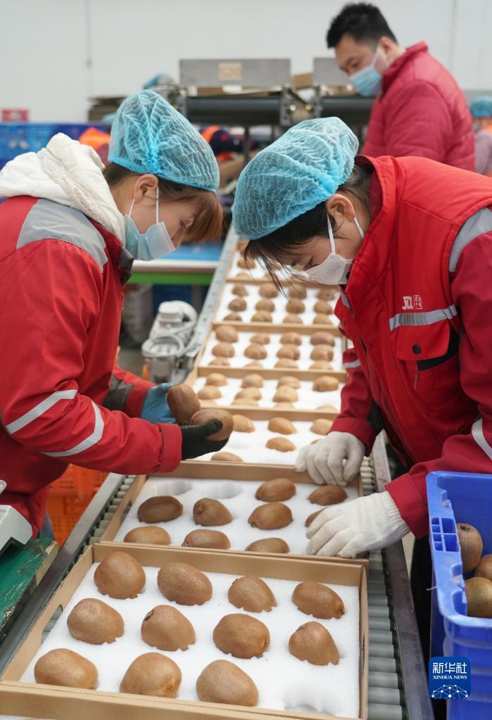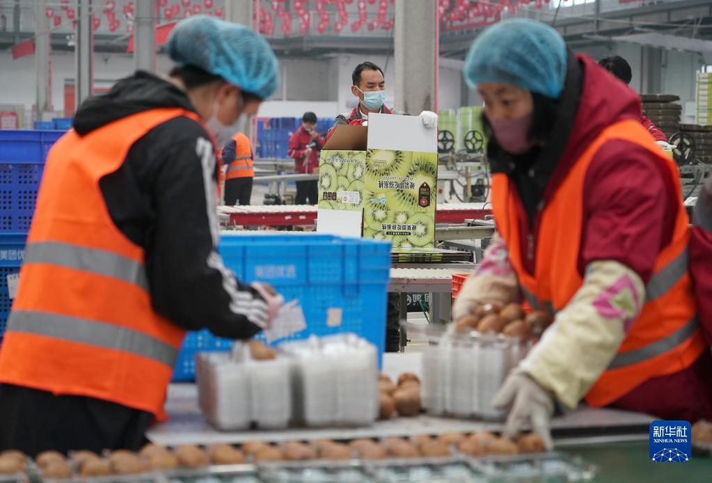 2月6日,在位于武功县的京东物流陕西智能供应链中心,工作人员在包装猕猴桃。