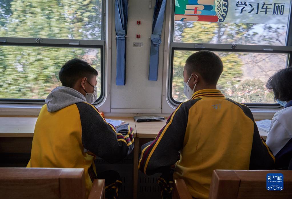 这趟开行几十年的慢火车对于沿途大山里的学生来说就是“校车”。此次升级改造将慢火车3号车厢改造成“学习车厢”,开辟阅读角,并安装了方便学生学习和存放书籍的课桌椅。