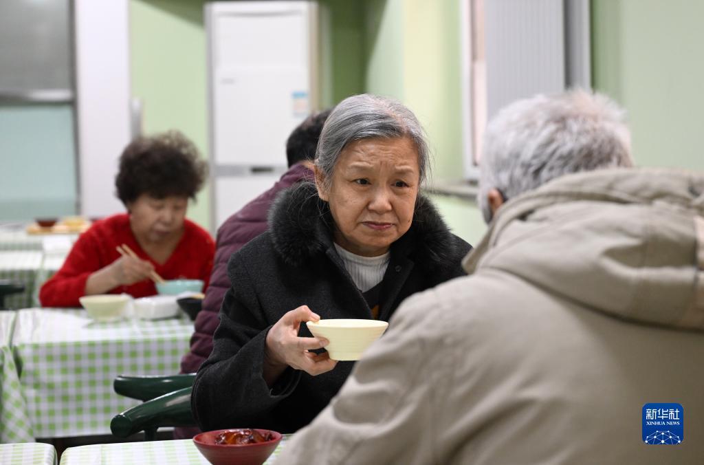 老人在天津市和平区南营门街道的老年人“智慧食堂”用餐(2月10日摄)。