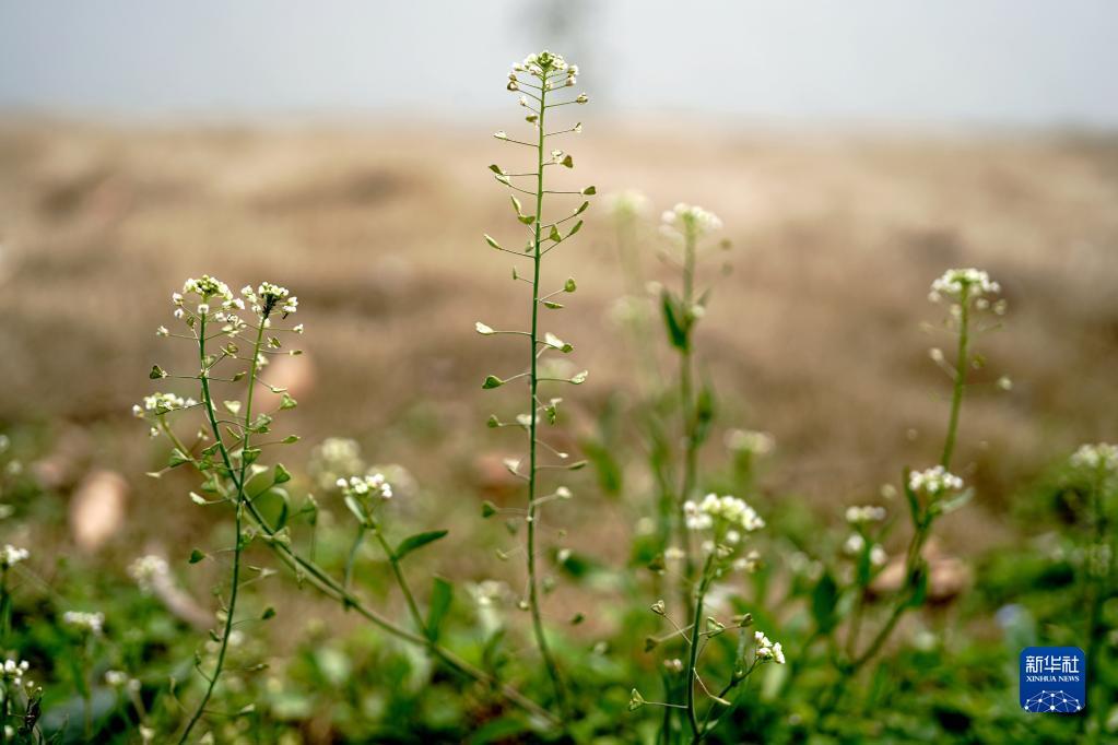 2月19日在上海松江区北泖泾河畔拍摄的荠菜花。