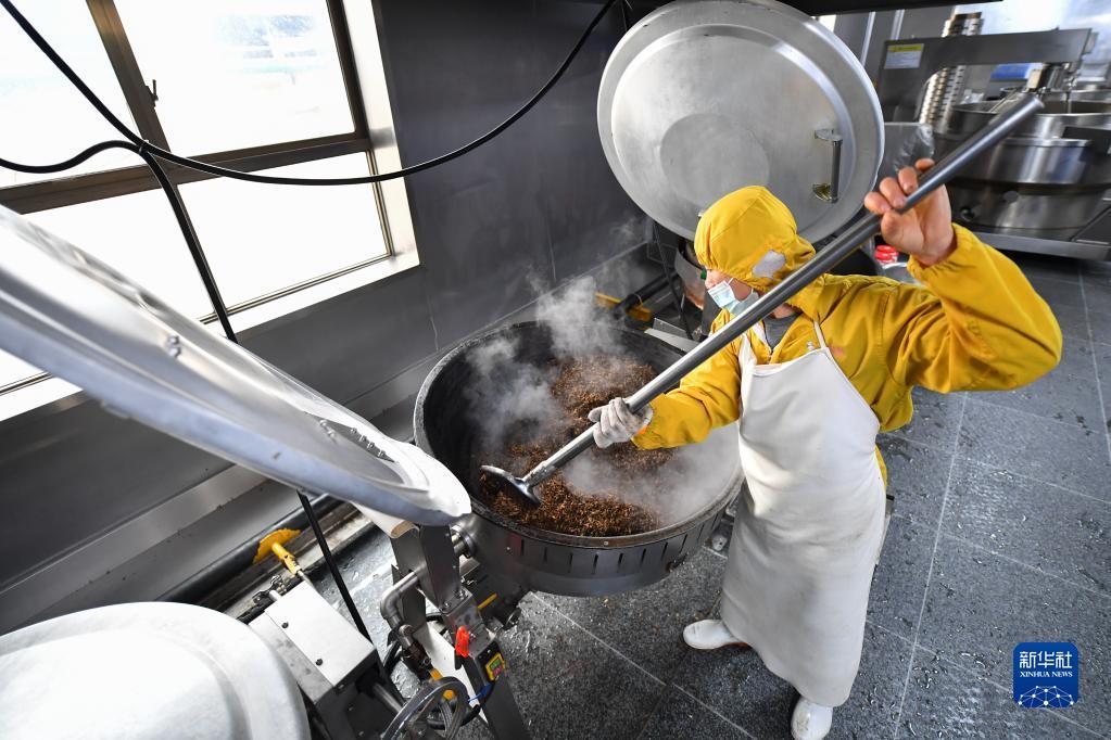 2月24日,浏阳市省级农业科技园区一家预制菜企业工作人员在生产车间炒制预制菜辅料。