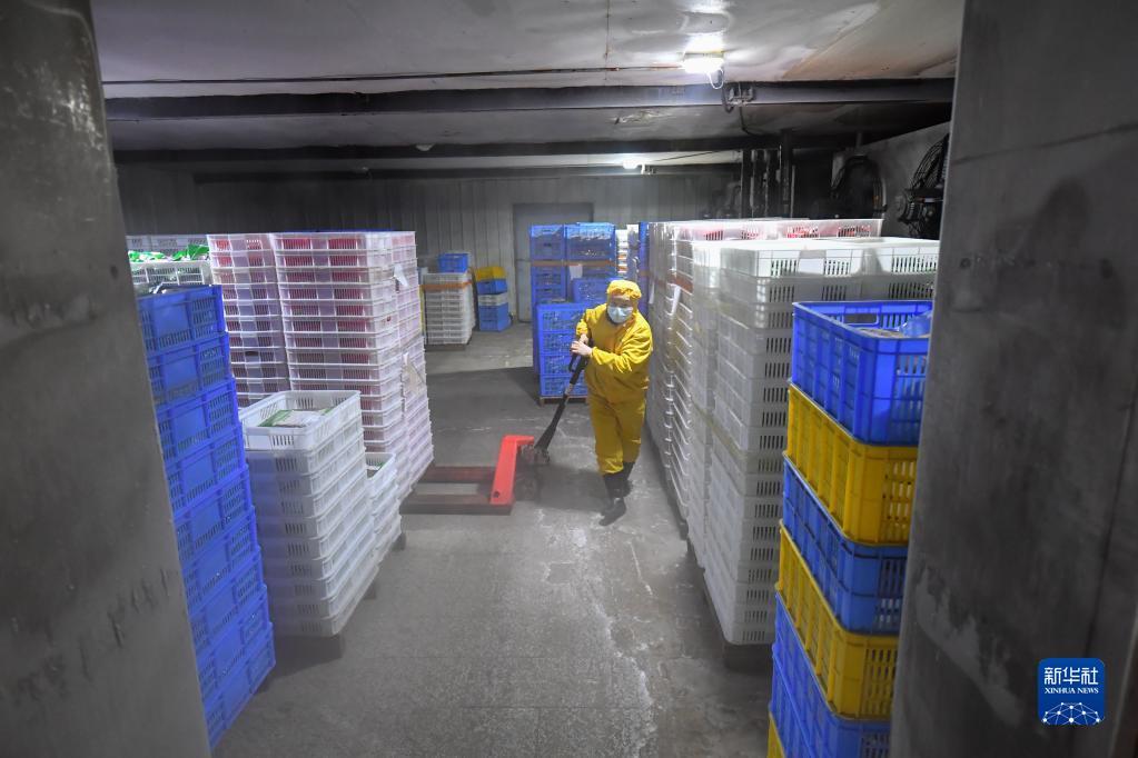 2月24日,浏阳市省级农业科技园区一家预制菜企业工作人员在冷库搬运预制菜成品。