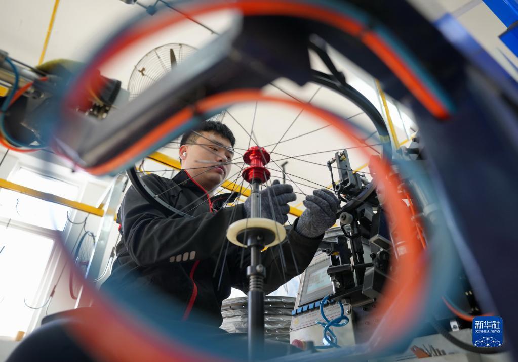 3月16日,工人在从天津转移到唐山市芦台经济开发区的一家自行车企业生产车间工作。