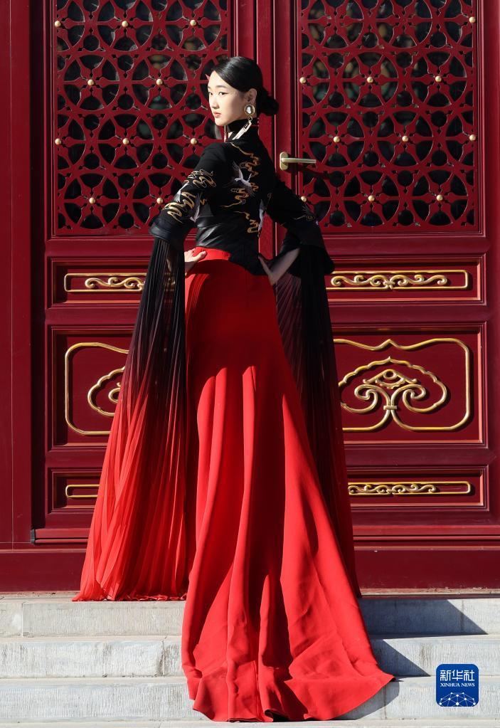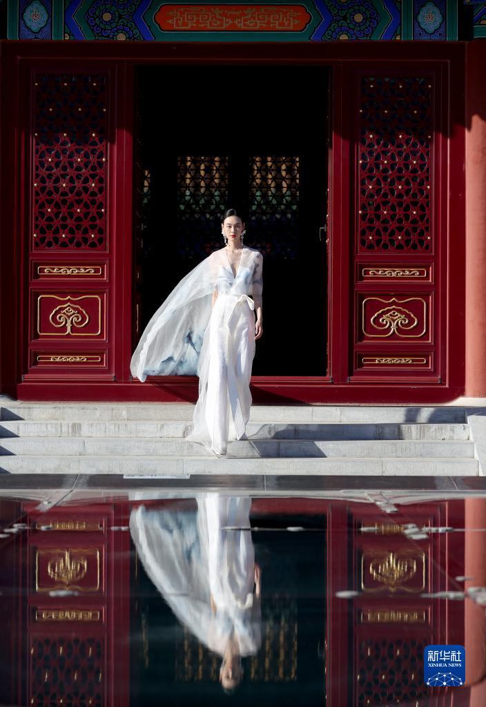 3月18日,模特在展示知名时装设计师熊英设计的具有非遗元素的时装。