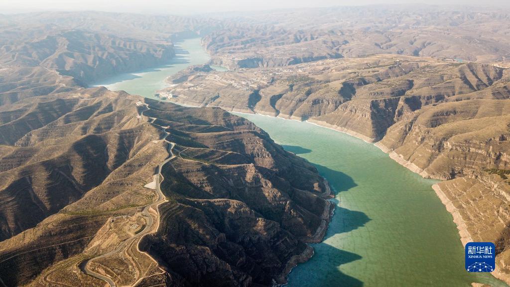 这是3月20日拍摄的内蒙古鄂尔多斯市准格尔旗境内的黄河老牛湾(无人机照片)。