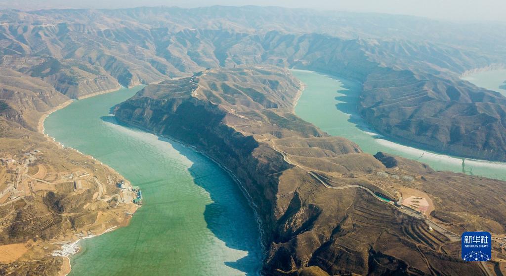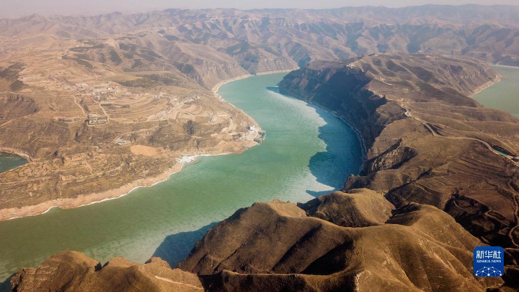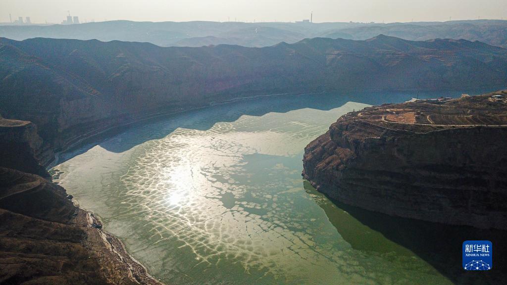 黄河老牛湾位于山西省和内蒙古交界处,我国黄土高原沧桑的地貌特征在这里彰显。初春时节,黄河老牛湾段部分水面依然冰封,从空中俯瞰呈现出苍茫雄浑的景象。