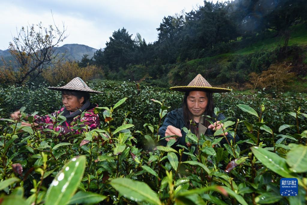 3月22日,赵家镇东庄村上阳自然村的茶农采摘高山有机茶。