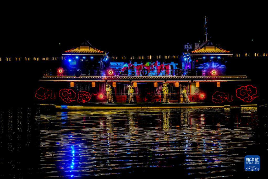 每当夜幕降临,四川省阆中市嘉陵江城区段灯光璀璨,大型民俗文化移动实景演出在此上演,这种“移步换景”的演出方式吸引众多游客。近年来,阆中古城为推动夜间经济发展,充分结合当地文化资源,推出《蜀道盛世》《客来阆中》等实景演出,增加游客夜游体验,带动当地文旅消费。
