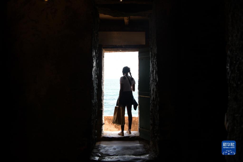 3月23日,游客在塞内加尔戈雷岛奴隶博物馆内参观“自由之门”。“自由之门”指奴隶被买主挑选后,由此门走出并登上奴隶船,从狭小的奴隶屋“被解放”,被运到未知目的地供人奴役。