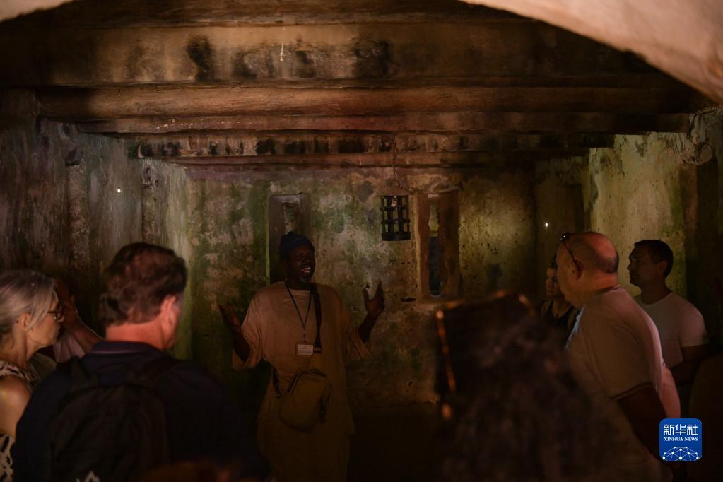 3月23日,导游在塞内加尔戈雷岛奴隶博物馆讲解。