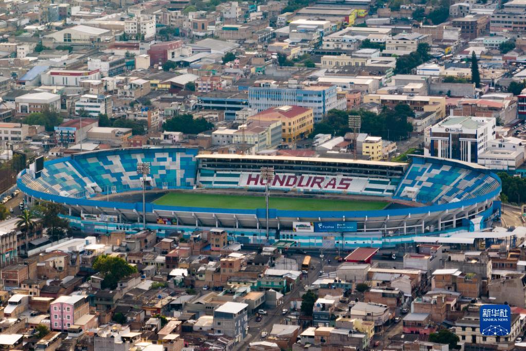 这是3月26日在洪都拉斯首都特古西加尔巴拍摄的国家体育场(无人机照片)。