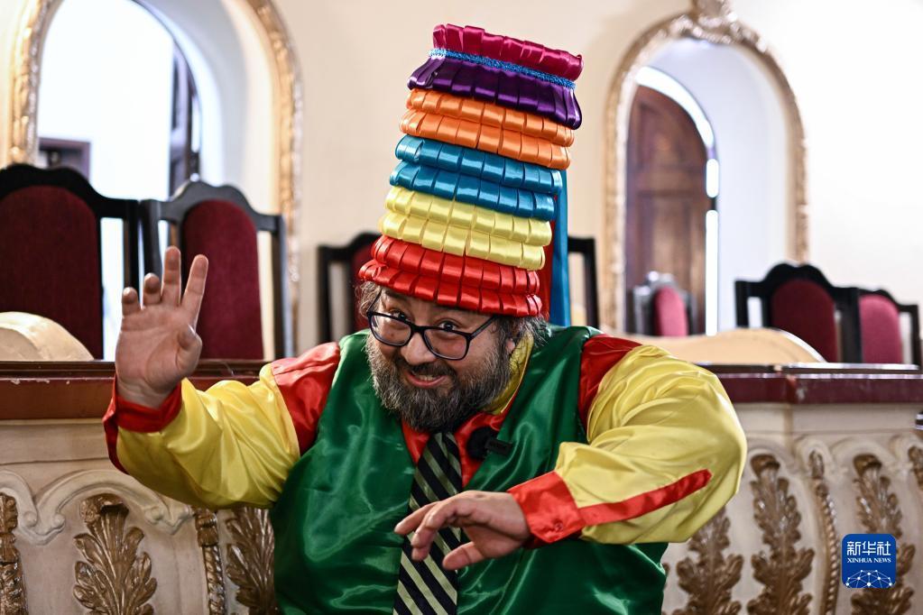 3月26日,一名艺人在洪都拉斯首都特古西加尔巴的一处剧院内表演。